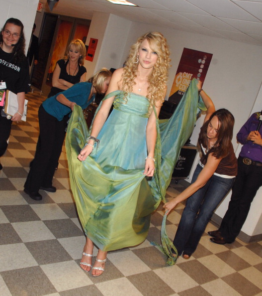 Taylor Swift backstage at Brad Paisley’s “Bonfires and Amplifiers Tour 2007” at the Shoreline Amphitheatre in Mountain View, California. (Photo by Tim Mosenfelder/Corbis via Getty Images)