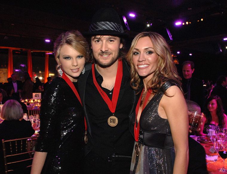 (L-R) Taylor Swift, Eric Church and Jennifer Hansen pose for a photo at the BMI Country Awards and reception honoring Willie Nelson at the BMI building on November 6, 2007 in Nashville, Tennessee. ***Exclusive*** (Photo by Rick Diamond/WireImage)