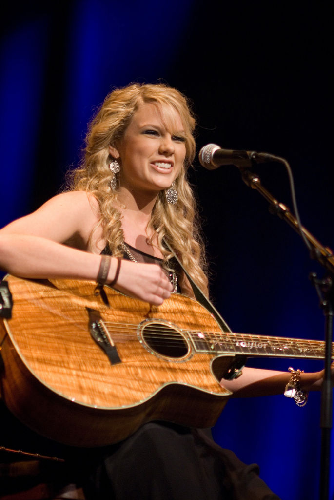 (MANDATORY CREDIT Ebet Roberts/Getty Images) UNITED STATES – OCTOBER 10: NOKIA THEATER Photo of Taylor SWIFT, performing live onstage at the benefit for the Country Music Hall of Fame and Museum (Photo by Ebet Roberts/Redferns)