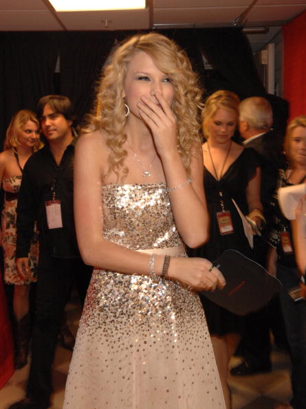 Taylor Swift during 2007 CMT Music Awards – Backstage and Audience at The Curb Event Center at Belmont University in Nashville, Tennessee, United States. ***Exclusive*** (Photo by Jeff Kravitz/FilmMagic, Inc)